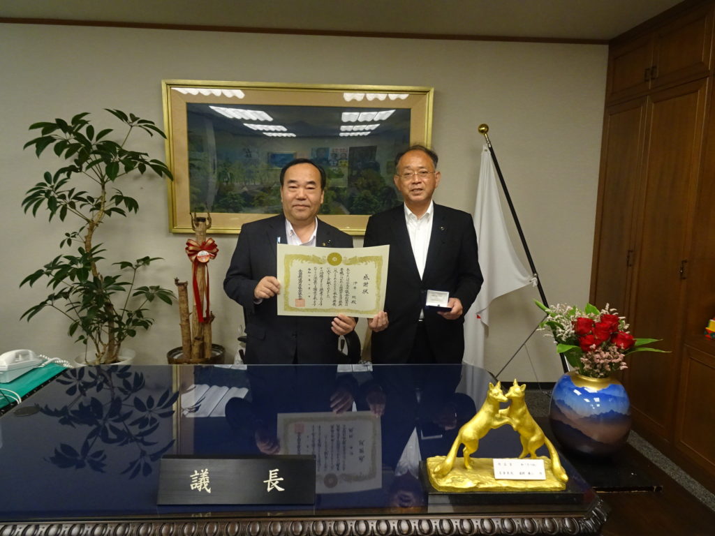 沖井前副議長への全国都道府県議会議長会からの感謝状贈呈式