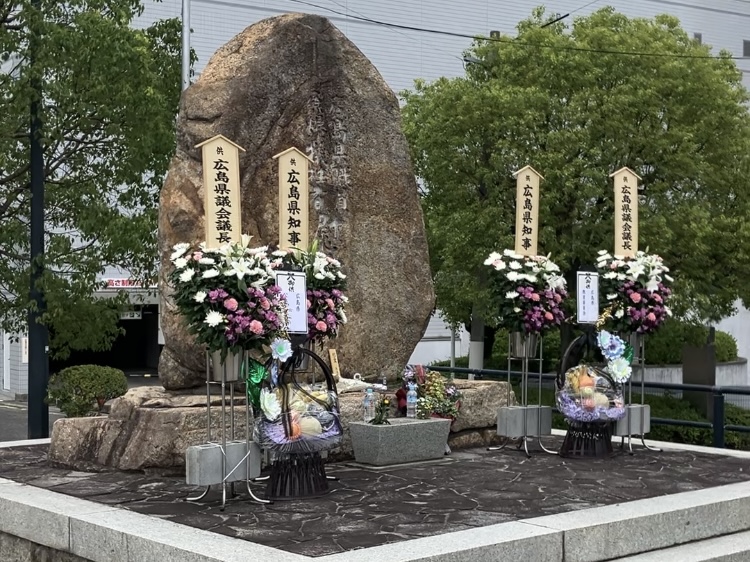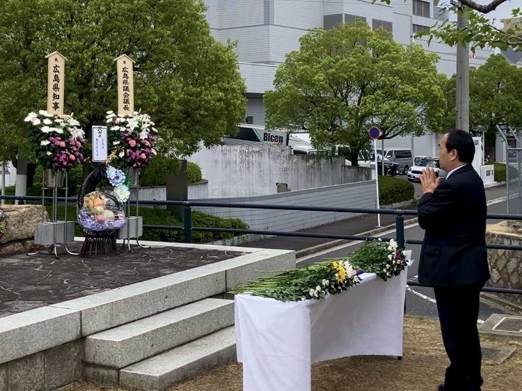 (広島県職員原爆犠牲者慰霊碑にて)